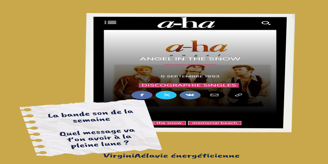 La bande-son, c'est "Angel in the snow" de A-ha, car ce sera la chanson du futur tirage Rock'n'Oracle de la Pleine Lune de la semaine prochaine. J'adore cette chanson, qui est l'une de leurs plus belles.